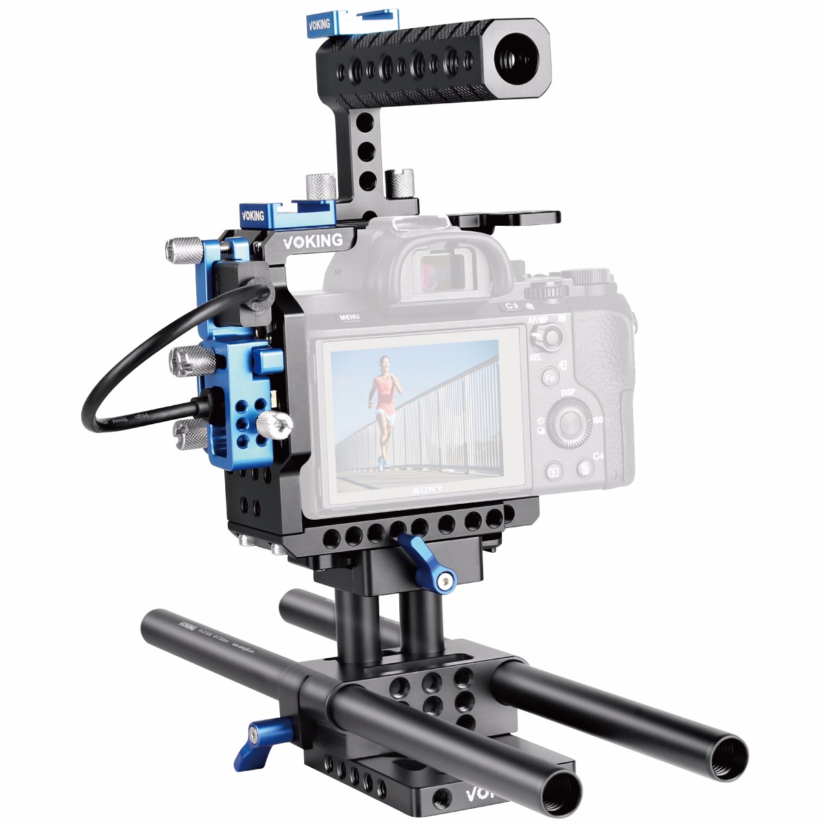 ◆ 結構上有很多螺孔,接口豐富,實(shí)用、便于安裝各種設備、拍攝時(shí)可以加裝閃光燈,監視器,跟焦器,麥克風(fēng)等,可以很好的提高拍攝效率。
